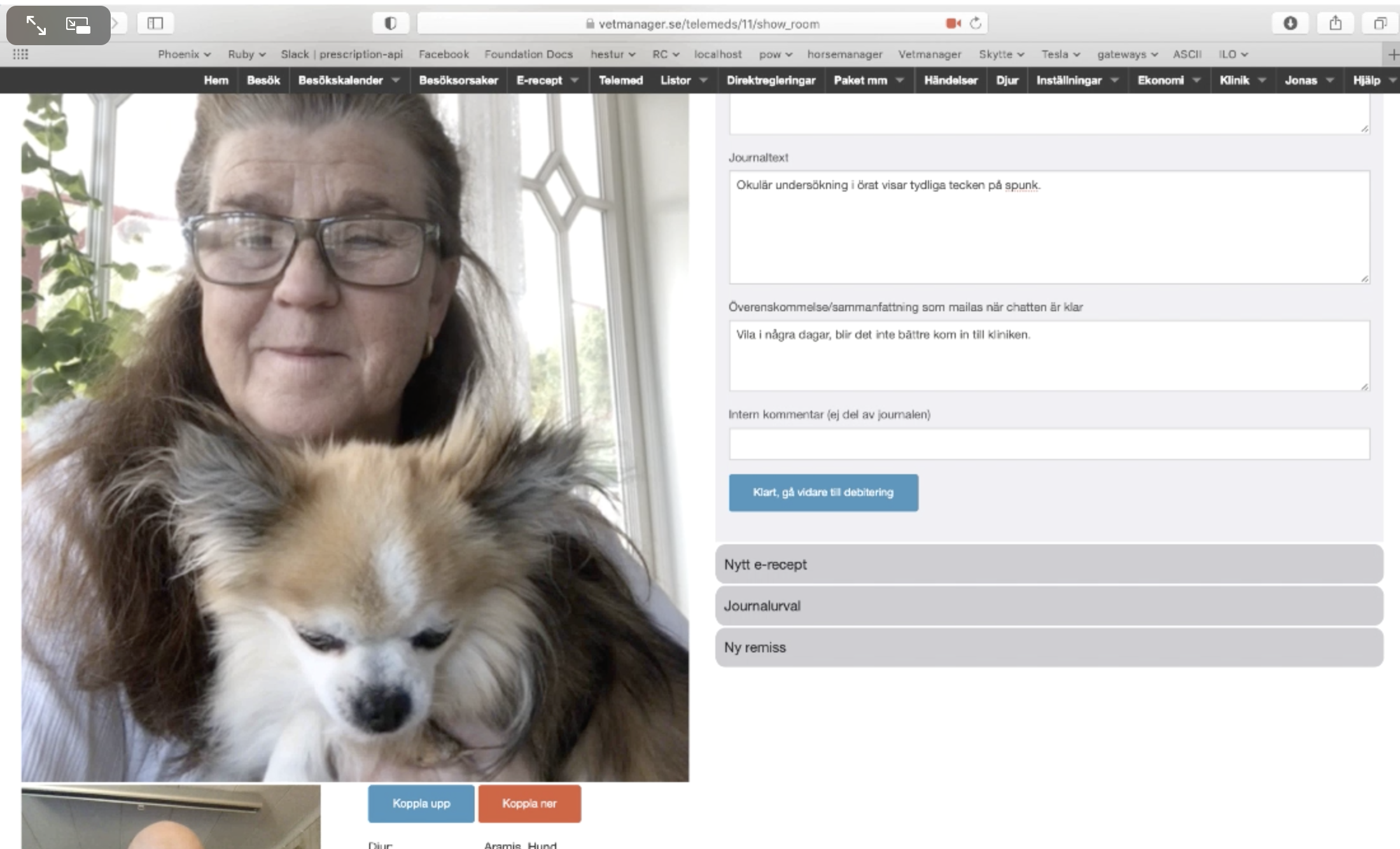 TelemedicinNu kan din praktik använda telemedicin (videokonsultationer) utan att behöva ansluta sig till någon stor tjänst. Det är integrerat i fullversionen av Vetmanager.